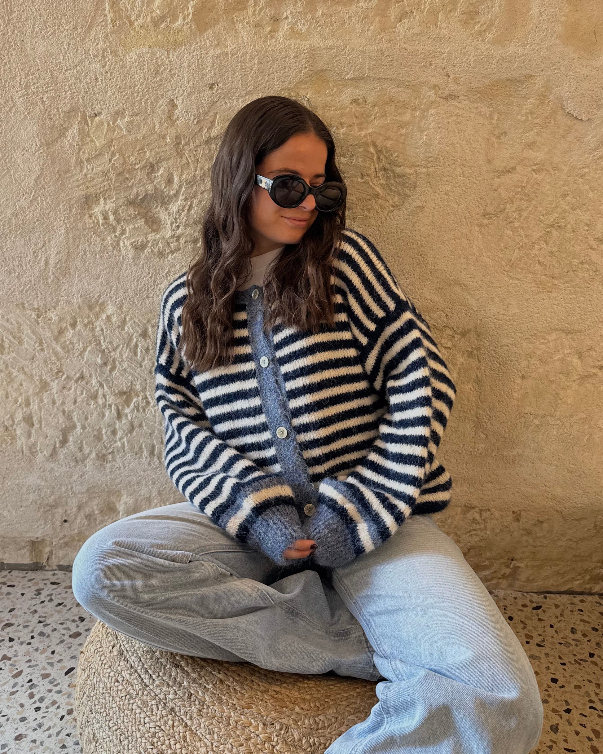 Le gilet rayé parfait pour réchauffer tes looks d’automne. Avec sa maille douce et ses boutons, il apporte une touche casual-chic à toutes tes tenues.