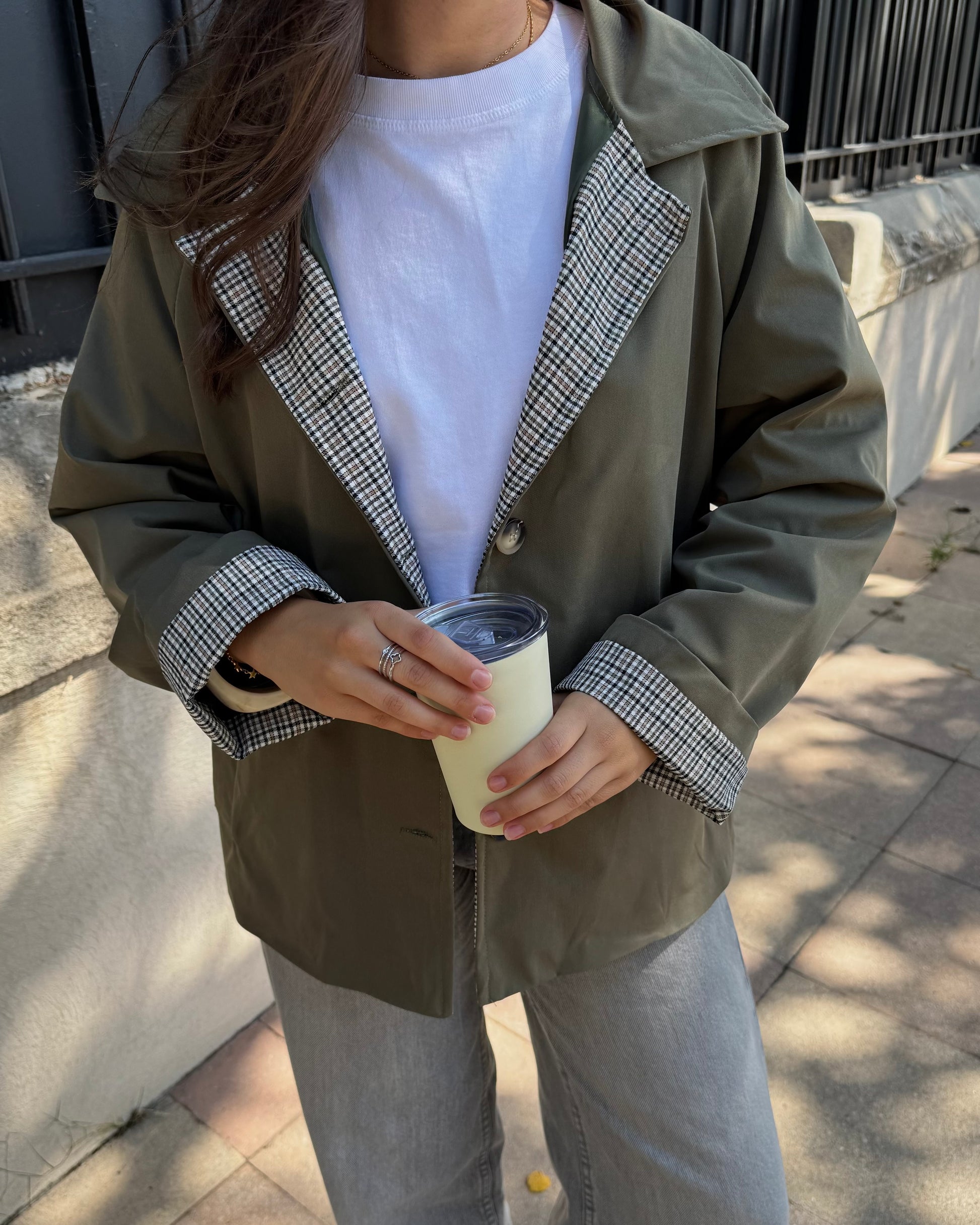 Un trench bicolore ultra moderne, qui twiste la pièce classique avec un côté décontracté et chic à la fois.